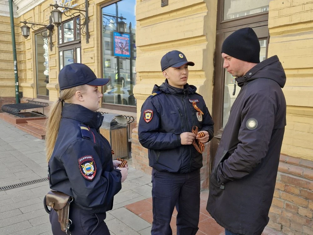 Сотрудники полиции не только дарят георгиевские ленты, но и устраивают блиц-опрос на знание истории!