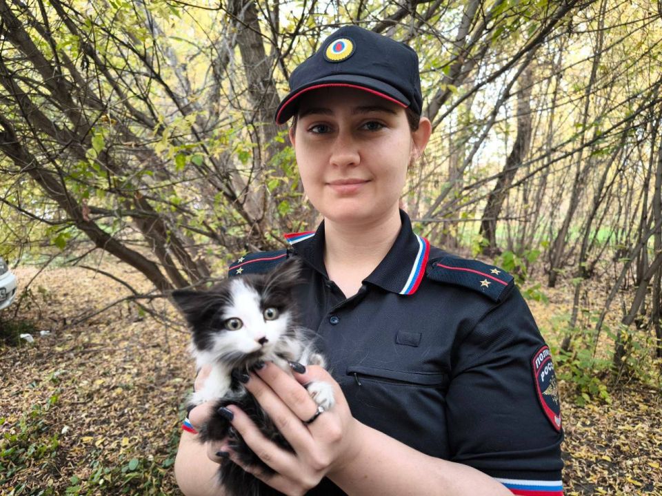 Находясь на службе по охране порядка у военкомата, инспектор по работе с личным составом МО МВД России «Шарыповский» лейтенант полиции София Егорова услышала звук, напоминающий мяуканье. Она направилась к источнику звука и обнаружила в высокой траве...