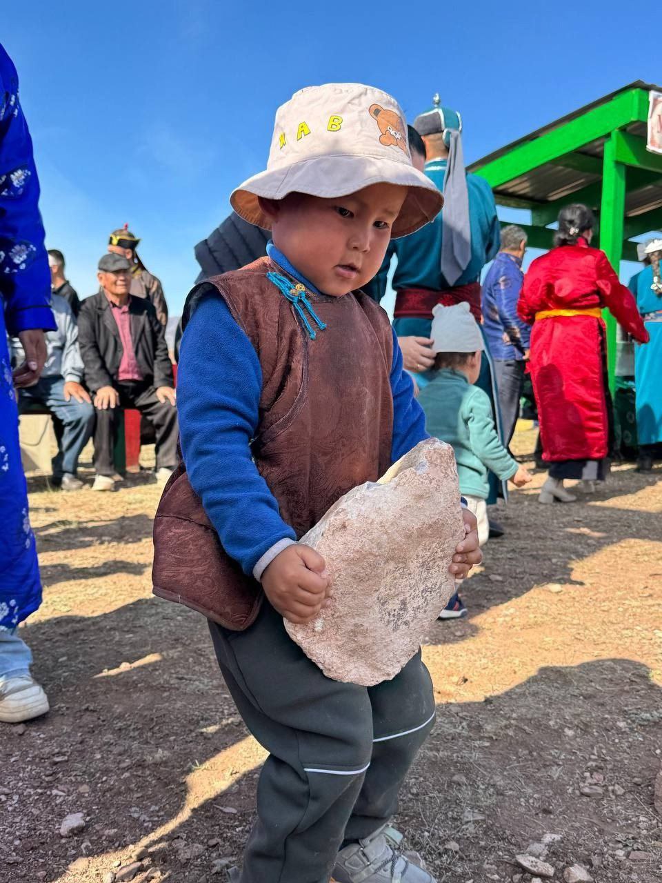 Он вызвался участвовать в районном состязании по подъёму камней - старинная тувинская забава, в которой обычно принимают участие взрослые богатыри. Мальчик не стал победителем, но какие его годы! Зато он неожиданно стал героем соцсетей.