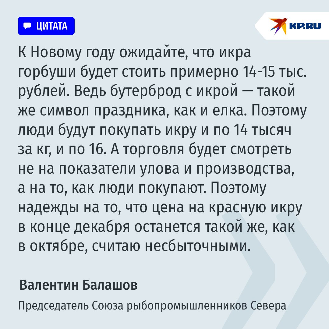 Торговля уже отреагировала. В крупных сетях начались скидки на икру — до 25%. Причем, с прилавков в конце прошлой недели уходил самый свежак — сентябрьское производство. Но так будет не всегда. По мнению председателя Союза рыбопромышленников Севера Валентина Балашова, крупный вылов не приведет к существенному снижению цены к новогодним праздникам. Поэтому надо не полениться купить 2-3 баночки сейчас по нынешним ценам, положить их в холодильник и спокойно ждать Нового года.