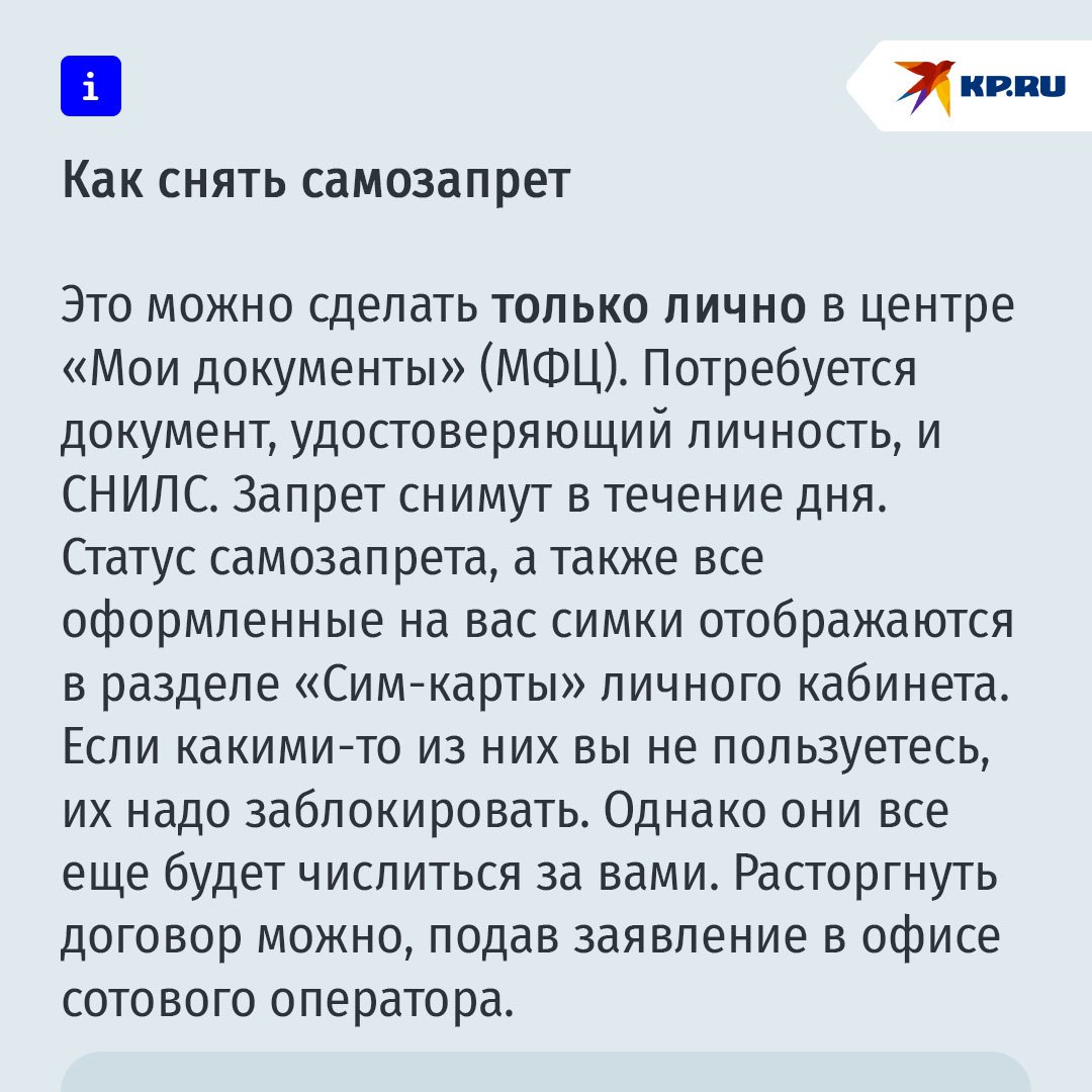 Добровольный самозапрет не распространяется на договоры с операторами сотовой связи, которые были оформлены ранее. Они продолжат действовать, а номера телефонов останутся с вами. Как это сделать и для чего это нужно - в наших карточках