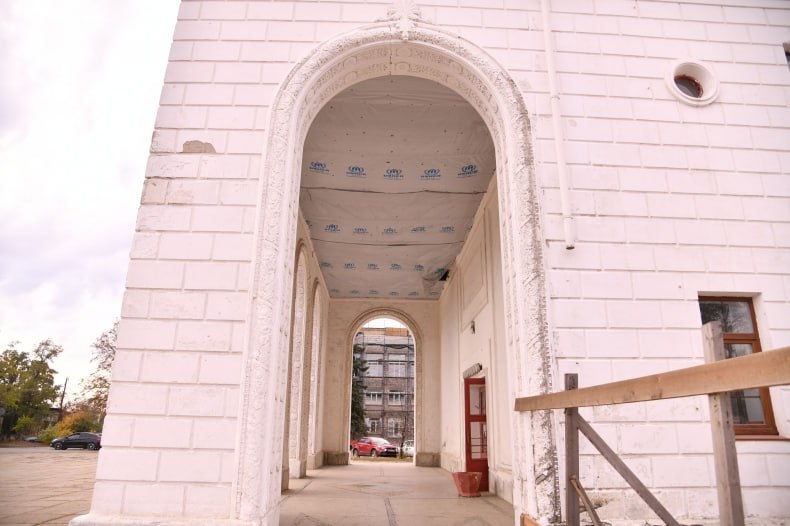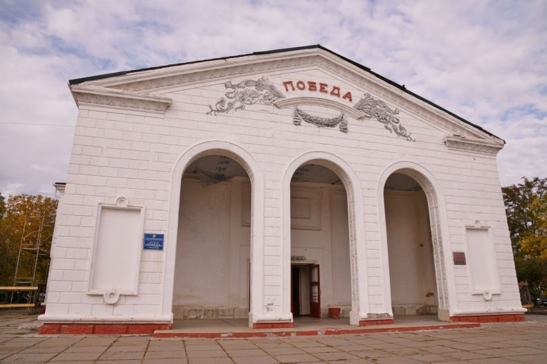 Сейчас специалисты трудятся над восстановлением входной группы и фасада здания. Эти работы требуют особого внимания, т.к. здание "Победы" признано объектом культурного наследия.