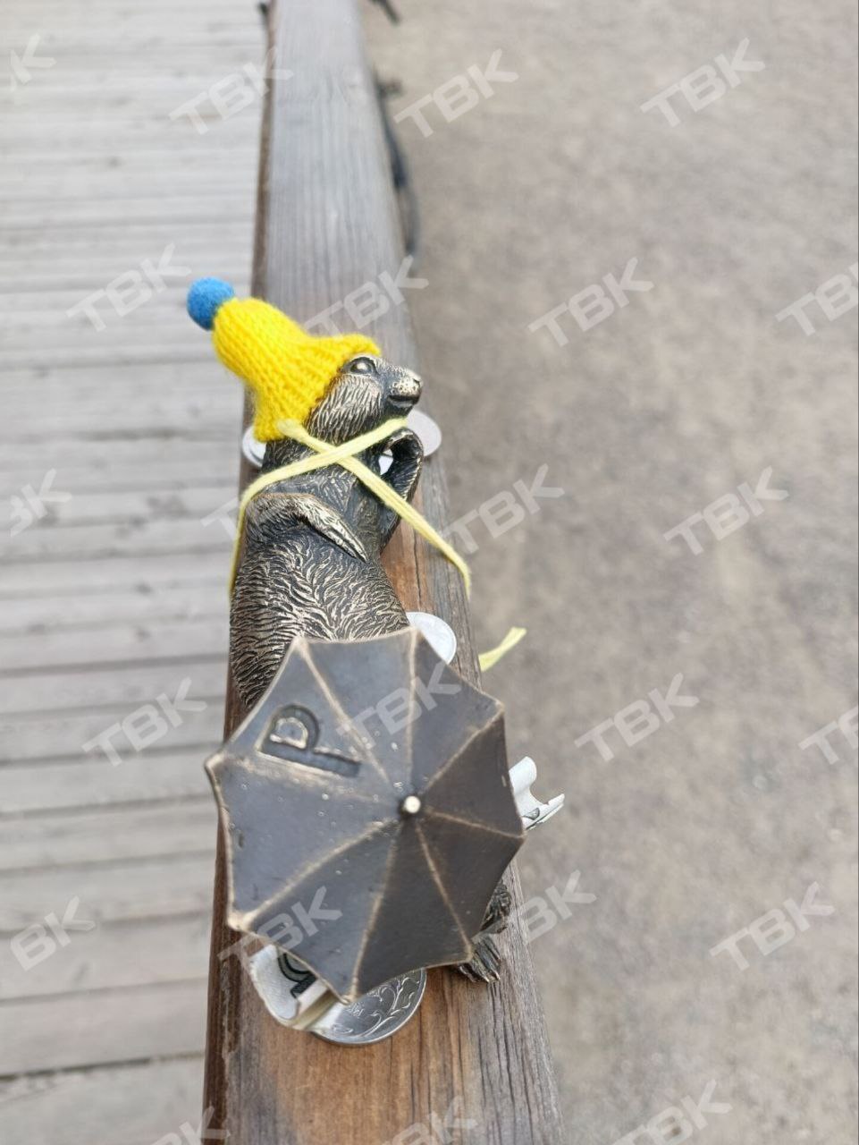 Красноярцы шьют крошечную одежду для бронзовых фигурок. Ранее желтый шарфик появился у суслика на Караульной горе.