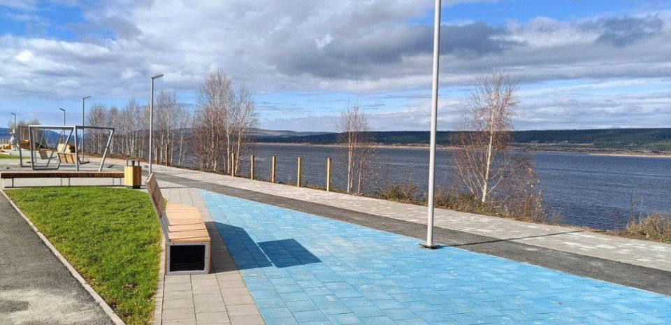 Но благоустройство затронуло не только это. Вдоль реки теперь проложены закольцованные дорожки из брусчатки и асфальта, установлены светильники, оборудованы места для отдыха и спорта, в том числе и для маломобильных граждан. Появилась и событийная площадь для проведения различных мероприятий — в будущем там появится новогодняя ёлка.