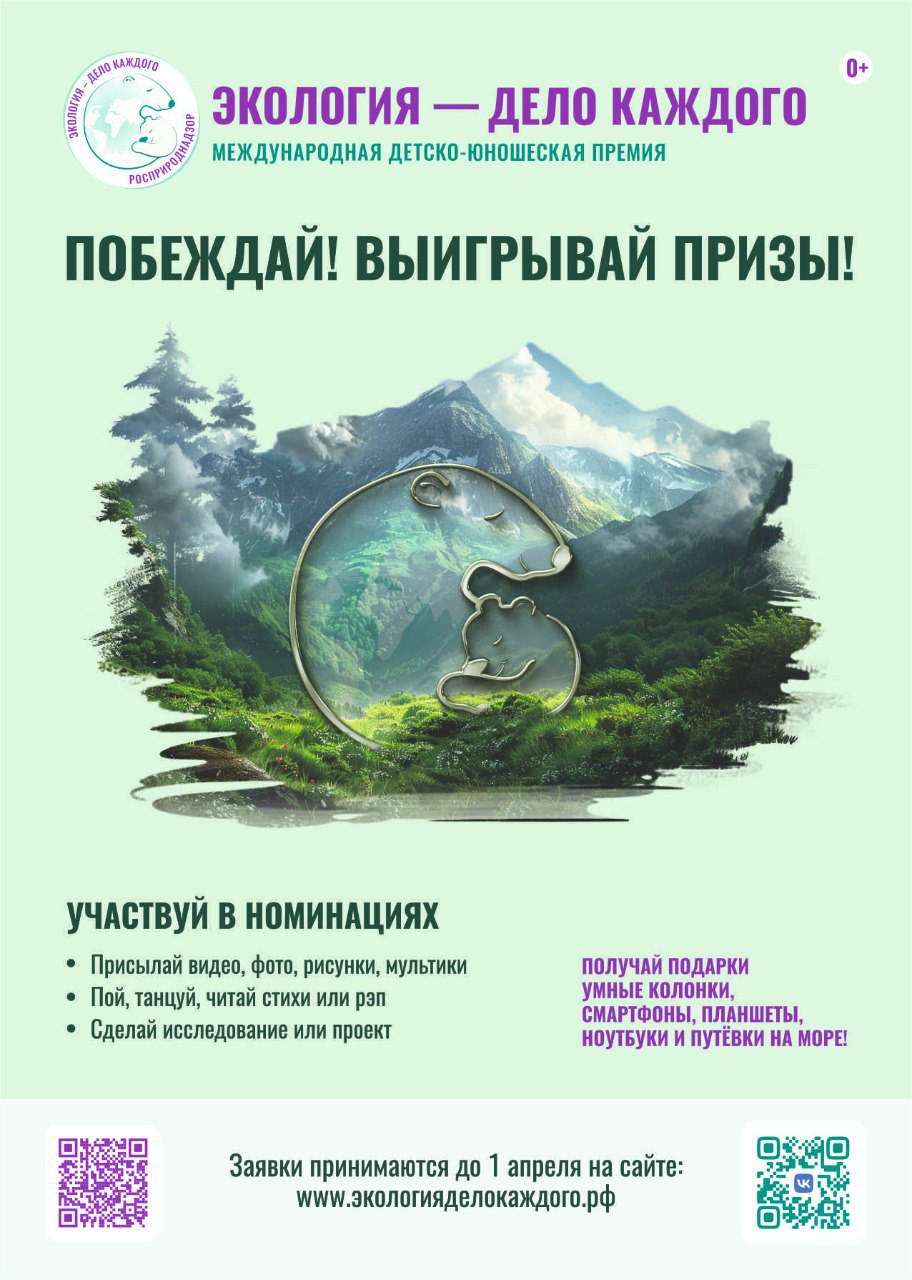 Прими участие в шестом сезоне Международной детско-юношеской премии «Экология – дело каждого».