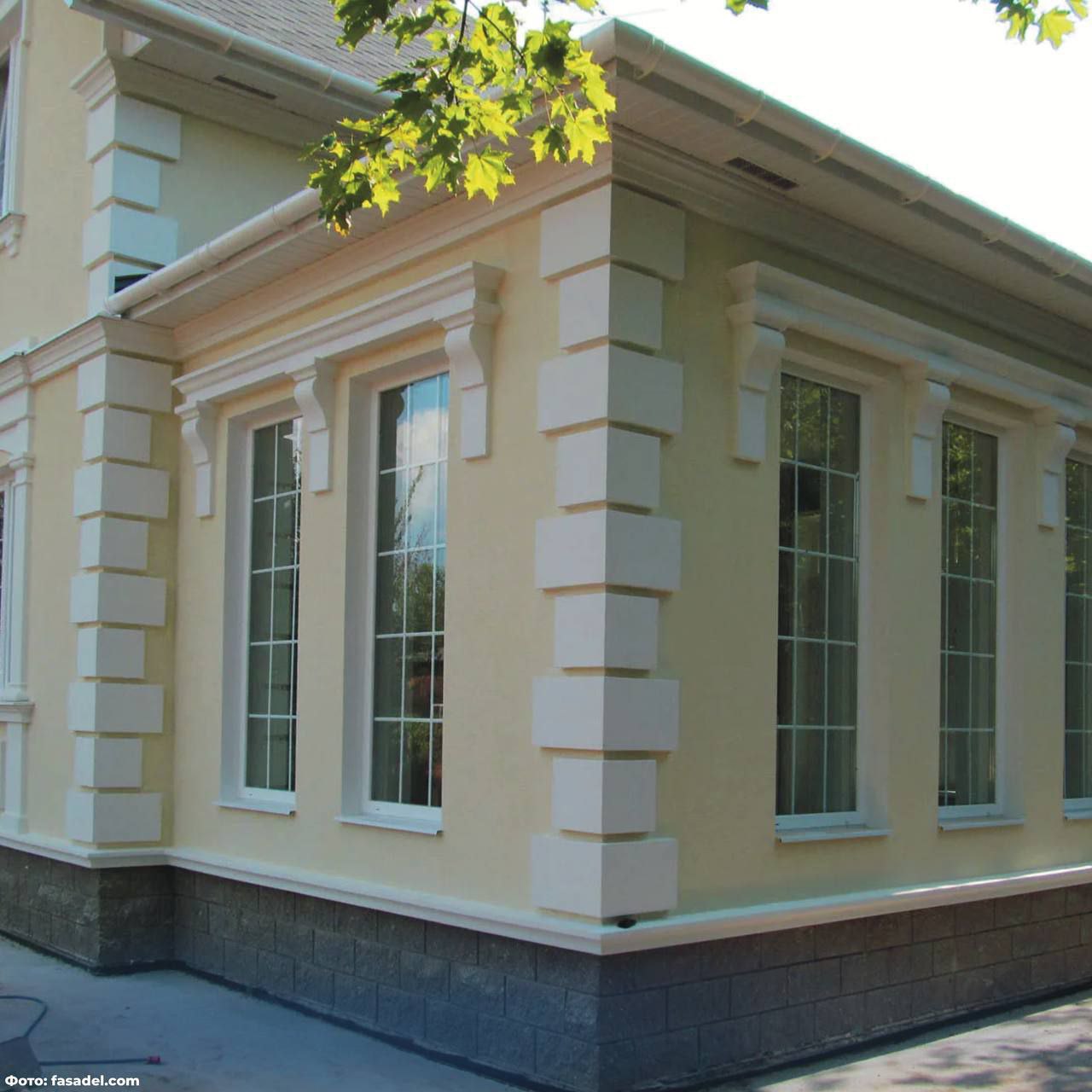 Этот элемент украшения фасада сразу привлекает внимание. Он делает облик здания солидным и надёжным.