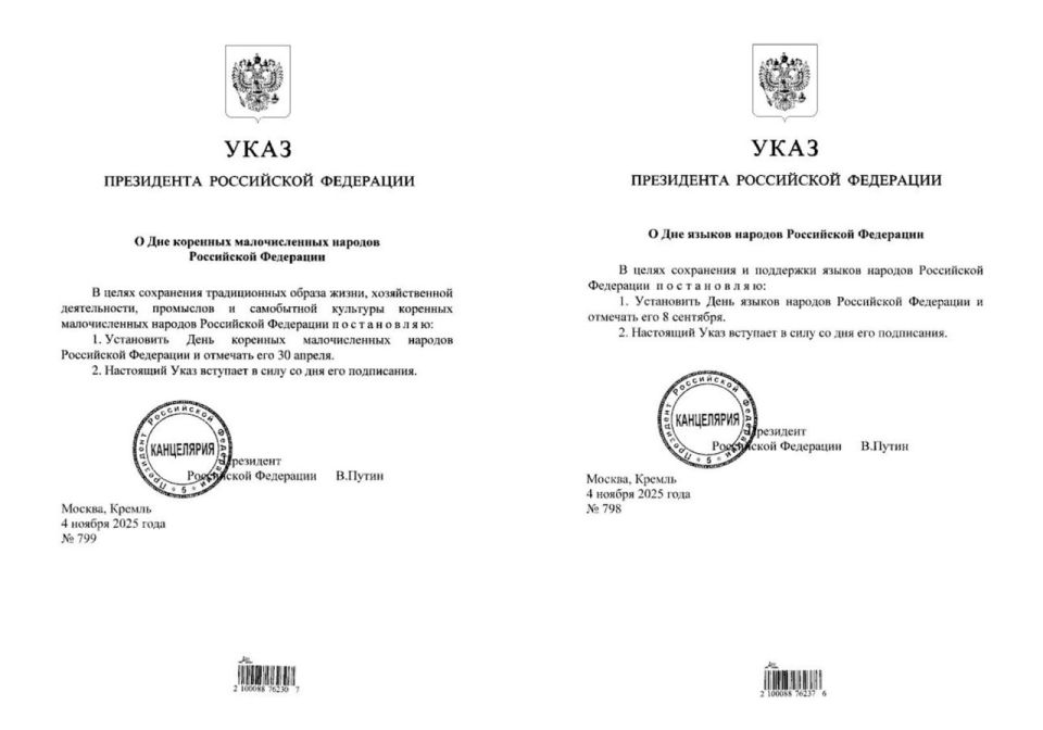 Теперь 30 апреля в России будет Днем коренных малочисленных народов, а 8 сентября — Днем языков народов РФ.
