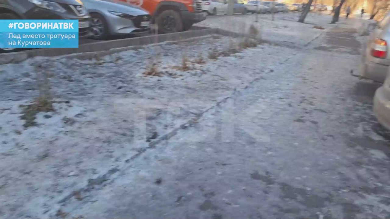 Вместо пешеходной дорожки по пути в БСМП на Курчатова – наледь, говорят красноярцы.