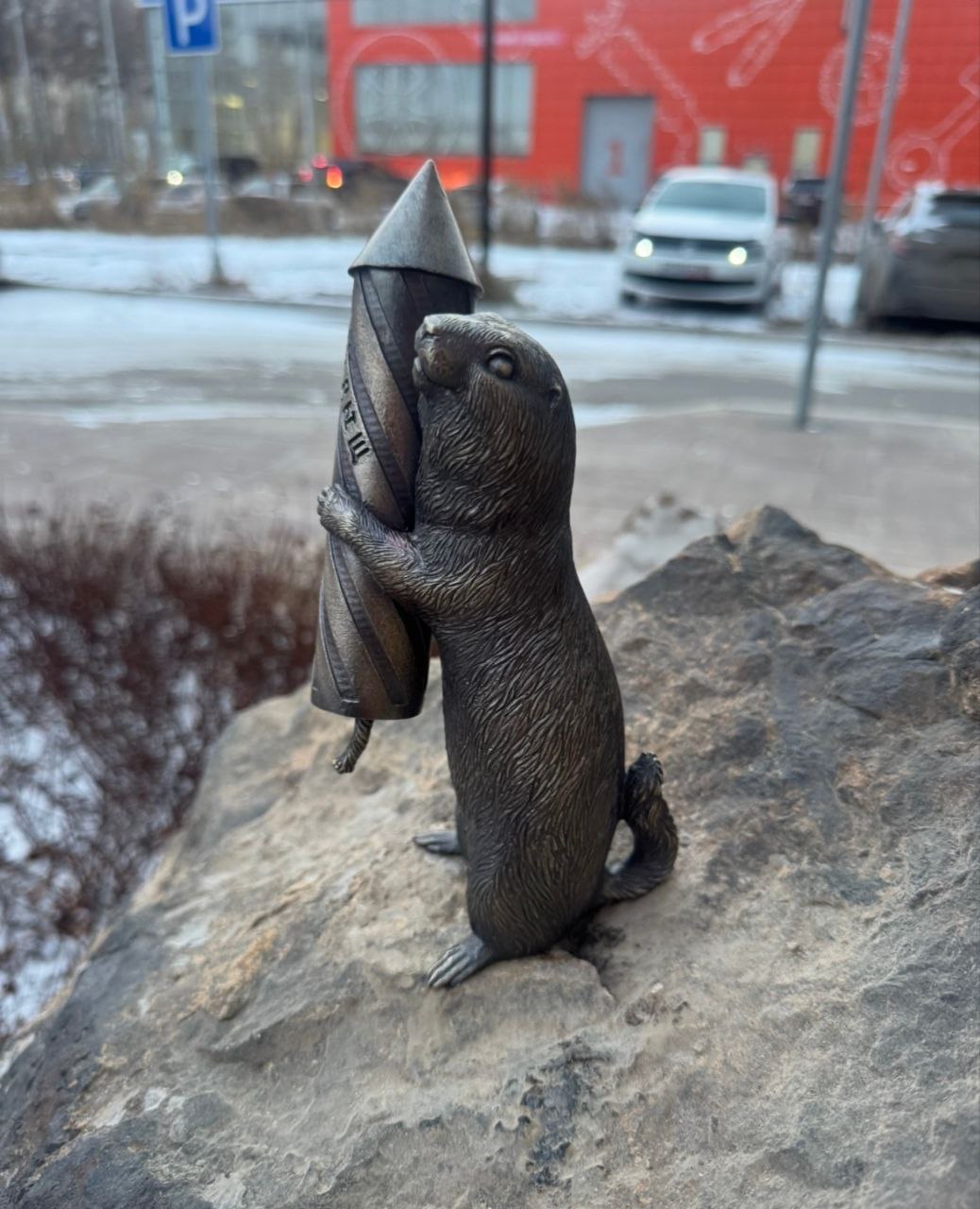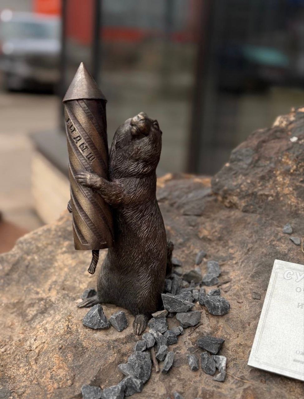 В Красноярске появился новый бронзовый суслик с фейерверком