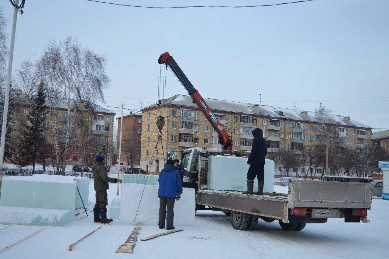 На прошлой неделе подрядчик приступил к работам — завёз ледяные глыбы и начал монтаж главных элементов праздничной локации. Сейчас строители возводят две горки для катания и создают ледяные фигуры Деда Мороза и Снегурочки.