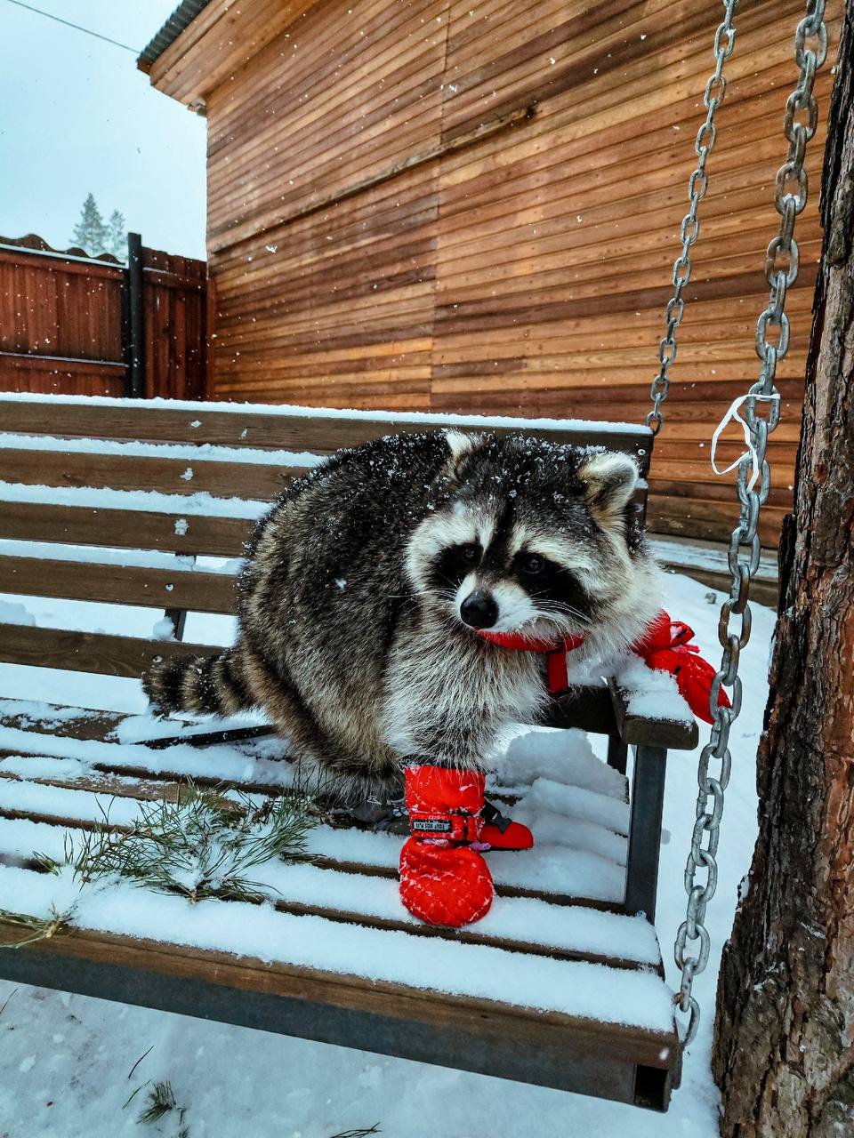 Наш енот Веня таким зимним аппетитом, как у манула, хвастаться не будет, а просто хорошо приоденется. Конечно, шёрстку на бочках отрастил густую, а на лапки пусть хозяйка купит варежки.