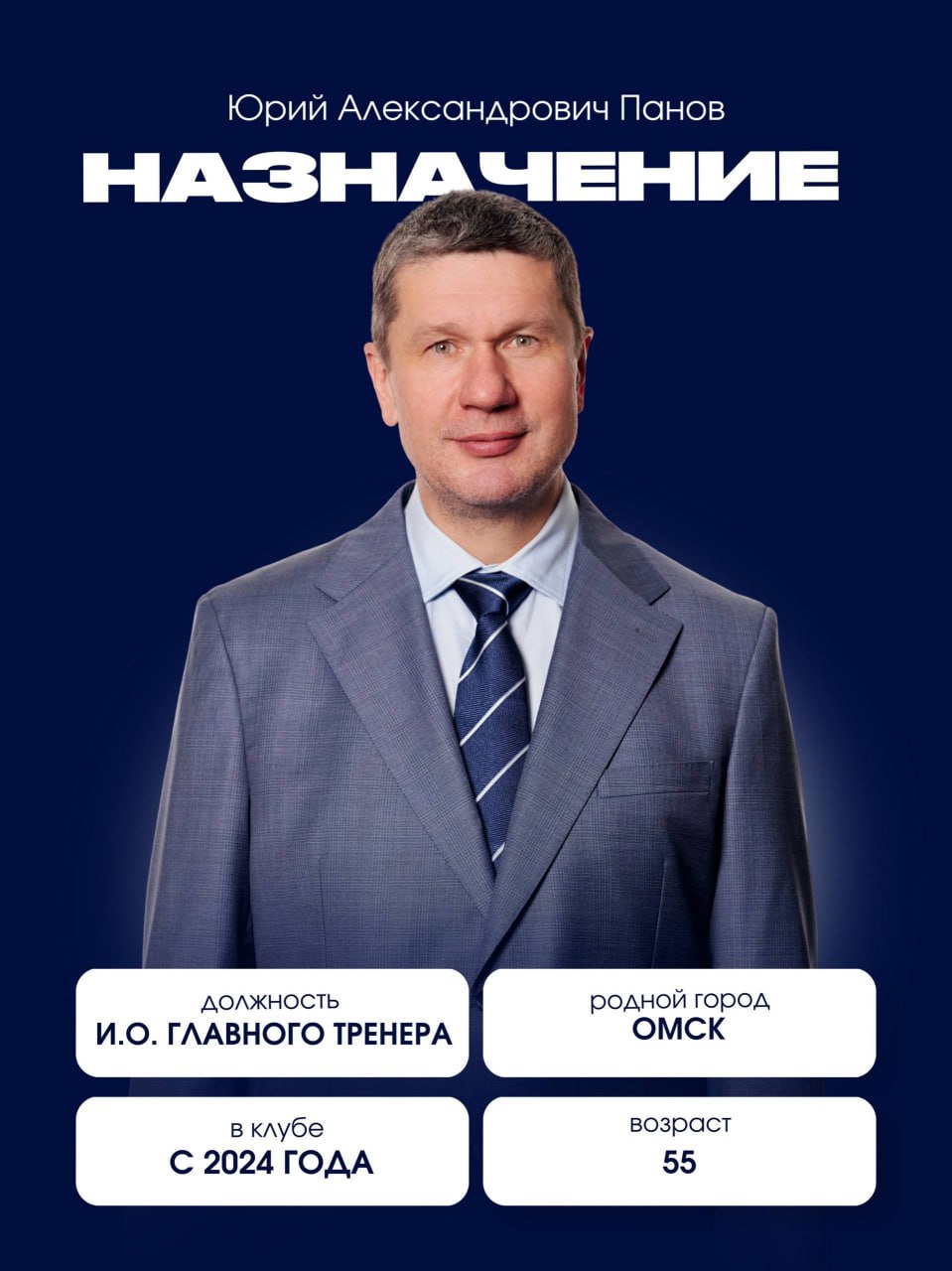 Исполняющим обязанности главного тренера «Сокола» назначен Юрий Александрович Панов.