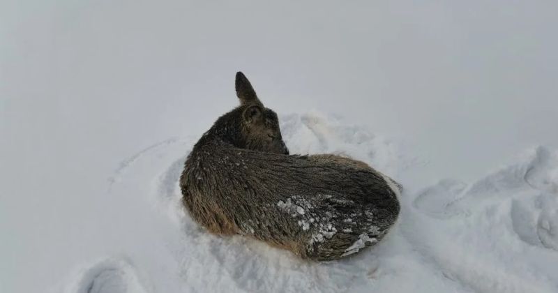 Животное выбежало на тонкий лёд, истратило силы и осталось лежать на ледяной глади, где его заметили работники лесной охраны.