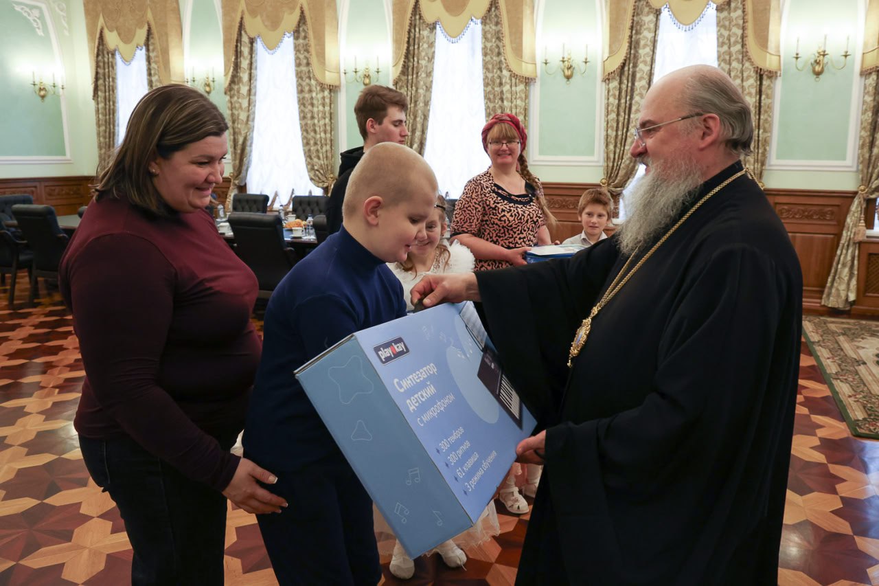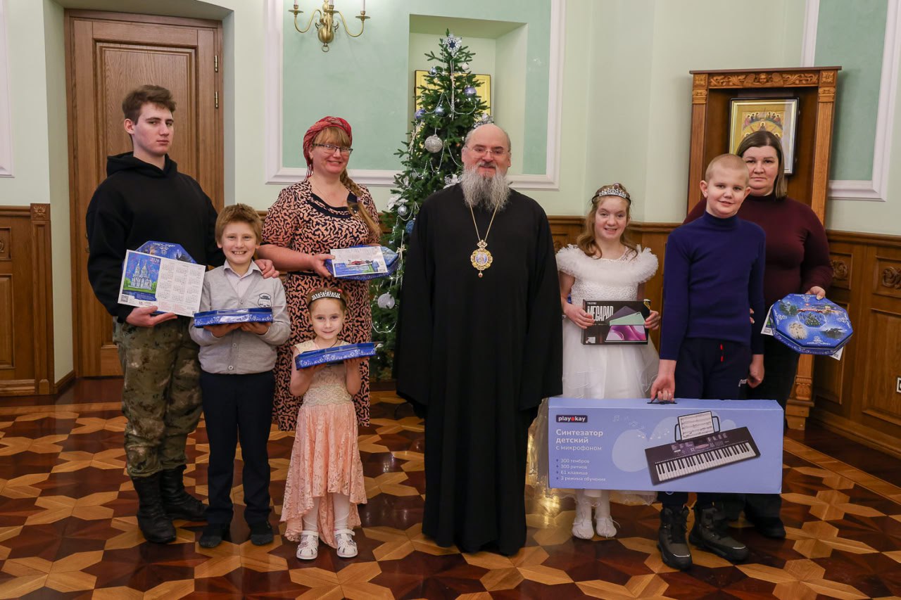 В преддверии Нового года правящий архиерей подарил юным красноярцам синтезатор и планшет, а их близким — сладкие наборы.