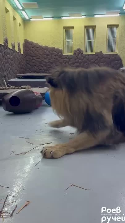 Царь зверей в своей зимней «квартире» уже начал тренировки. В программе игры с мячом и большим кувшином.