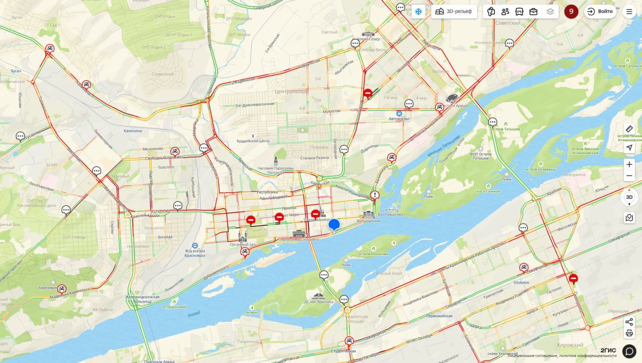 В Красноярске 9-балльные пробки