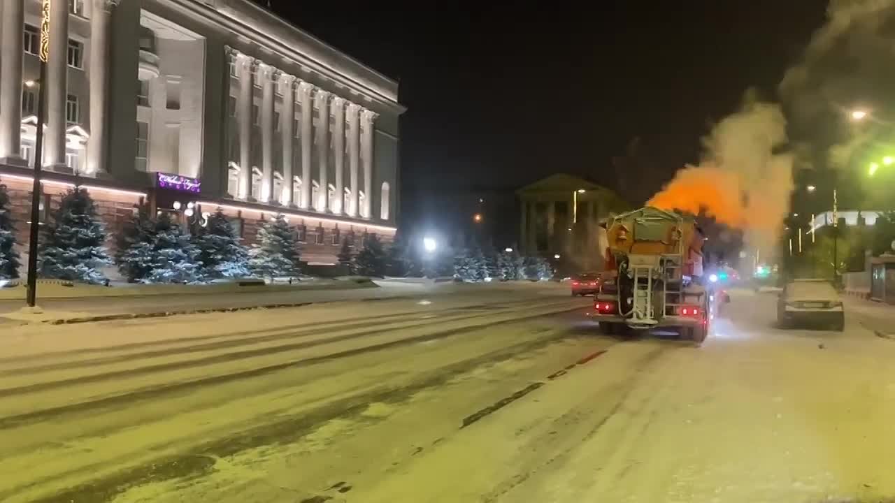 Спецмашины продолжают работу даже в такую погоду, прометают улицы и подсыпают проезжую часть противогололедным материалом. Тяжелая техника дежурит круглосуточно и в экстренных случаях готова прийти на помощь в любой момент.
