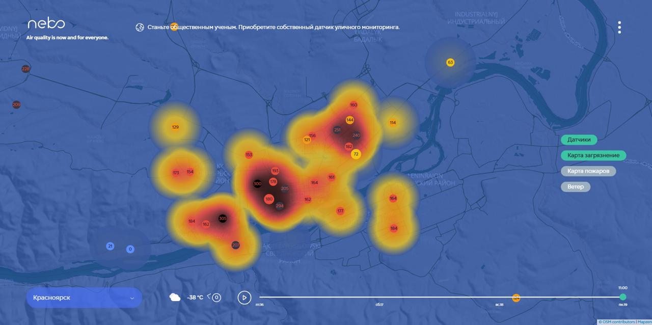 Датчики nebo.live фиксируют загрязнения во всех районах города, особенно тяжело дышать в Железнодорожном, Октябрьском и на Взлетке. Режим НМУ должны снять сегодня в 15:00.