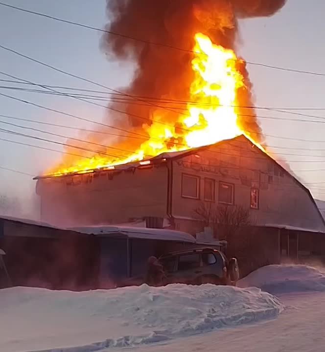 По данным МЧС, горит 2-этажный 2-квартирный дом на улице Школьная. Площадь пожара составляет 250 кв.