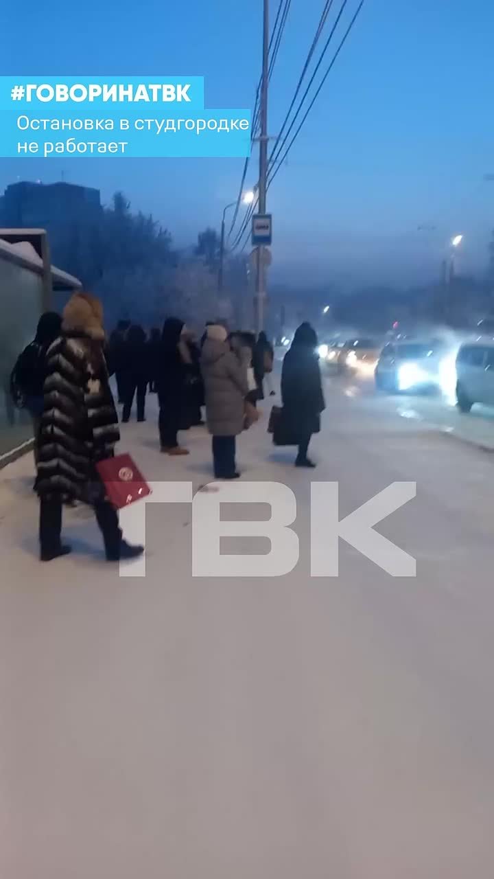 Как говорит автор видео, в 40°C жители вынуждены ждать транспорт на холоде. По словам красноярки, теплая остановка в Студгородке много лет стоит бесхозной и так и не заработала.