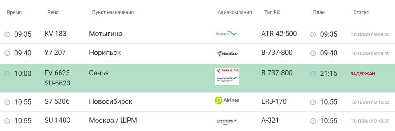 «Рейс снова перенесли на 10 утра завтра. Запасного борта так и нет. На Флайтрадаре ничего запасного не летит. В самом Красноярске с утра стоит 2 борта "России", в течении дня никуда не летали. Ну не могут же они оба сломаться. У людей украли 2 дня отдыха уже...».
