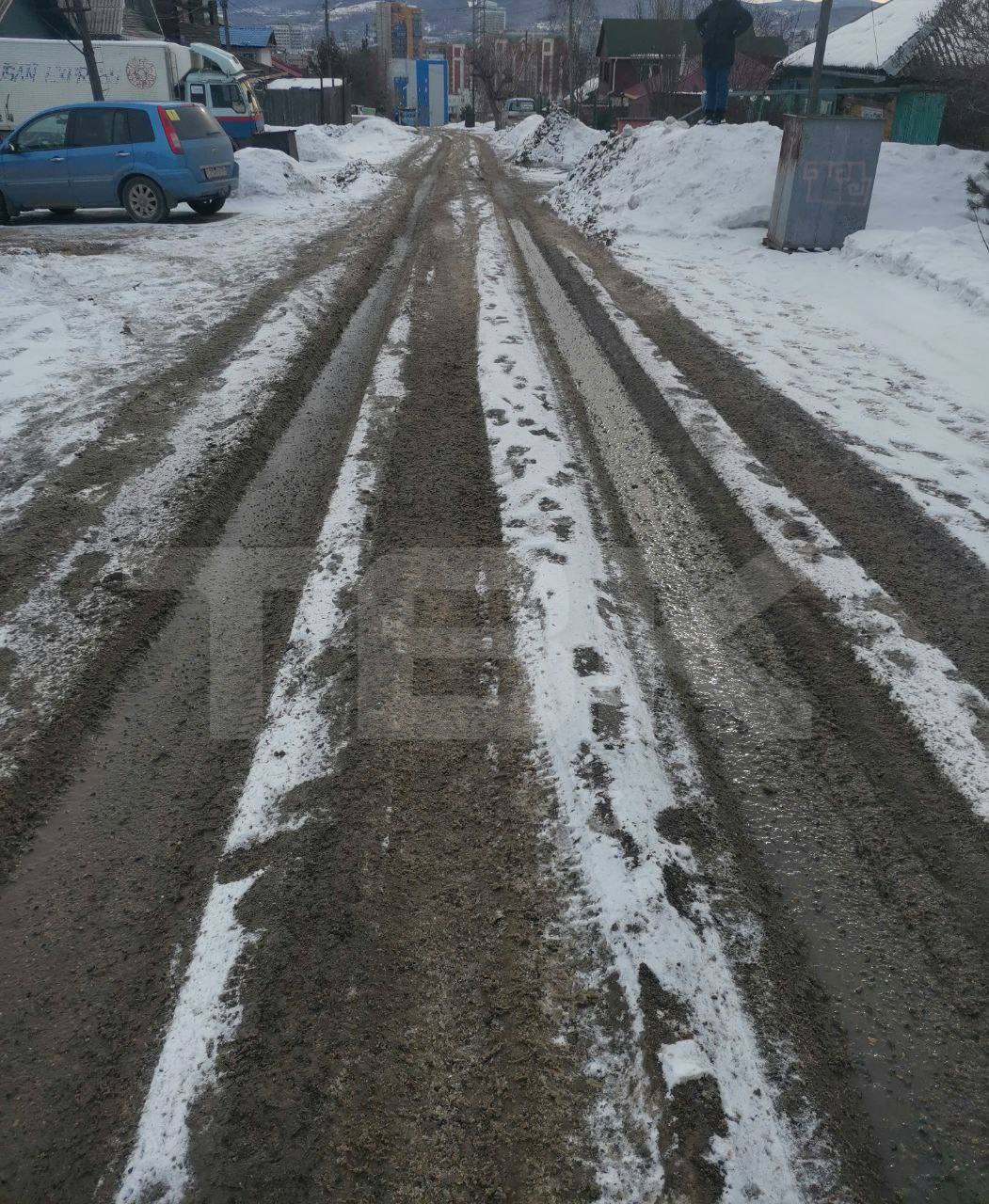 По словам автора фото, участок от дома №1 до №22 превратился в ледяную колею. Обращения в администрацию и службу 005 результата не дали.
