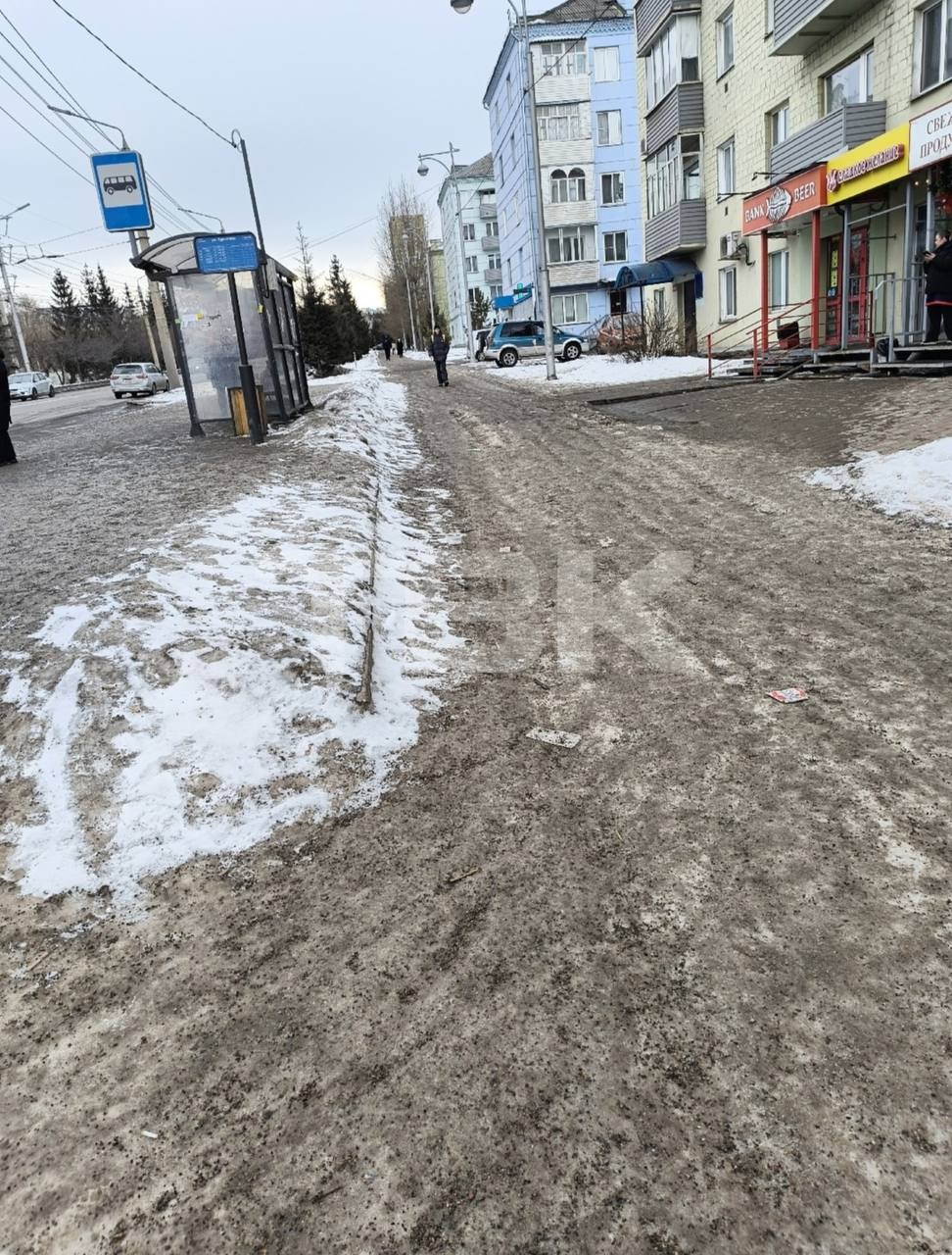 По словам автора фото, вдоль домов №50–62 в ледяных наростах, и добраться до остановки общественного транспорта непросто.