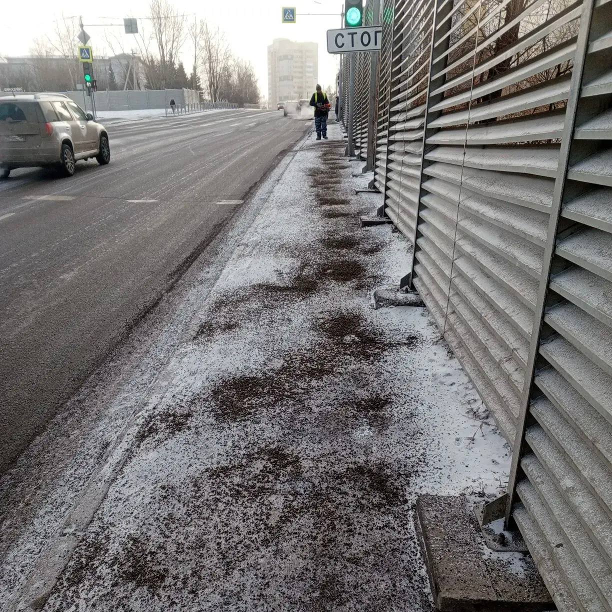 Но 234 рабочих УДИБ и САТП продолжают помогать городу и делать #Нескользко. Оперативно обрабатывают тротуары фрикционными материалами, так как с наледью в холод бороться сложно