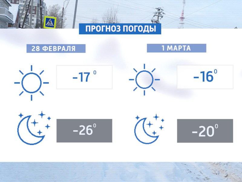 Выходные в Красноярске будут морозными, но пугаться не стоит. Сегодня, 28 февраля днём столбик термометра остановится на -17, но будет по-весеннему солнечно. Ночью температурный показатель зафиксируется на отметке -22 градуса.