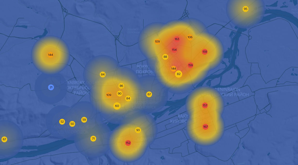 Судя по данным карты nebo.live, хуже всего ситуация с воздухом этой ночью была в Железнодорожном районе и на Взлетке. Сейчас датчики также фиксируют превышения по загрязнению во всех районах.