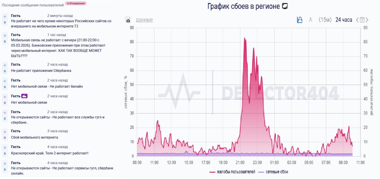 Платформа DownDetector регистрирует десятки жалоб на работу интернета и связи каждый час.