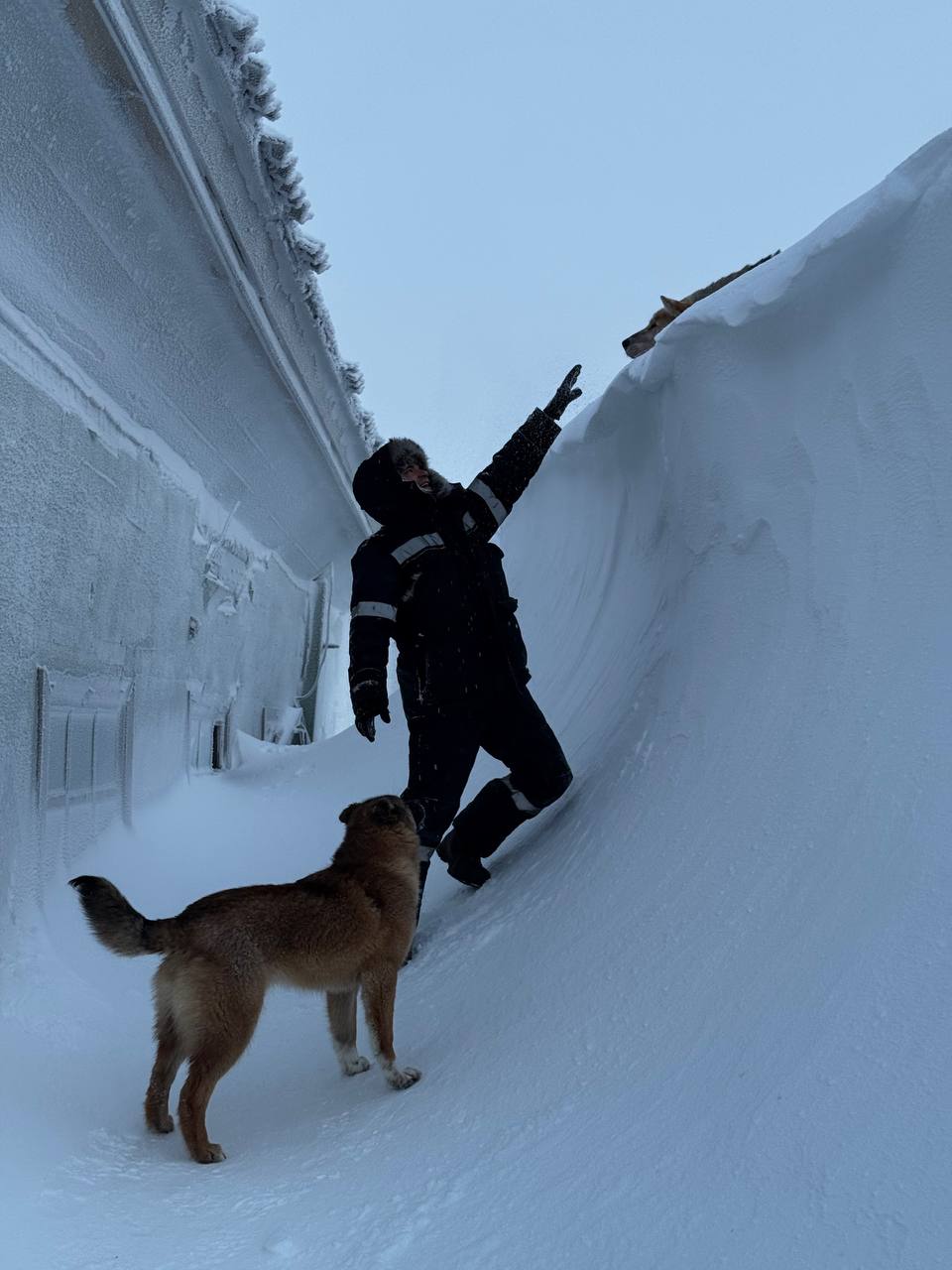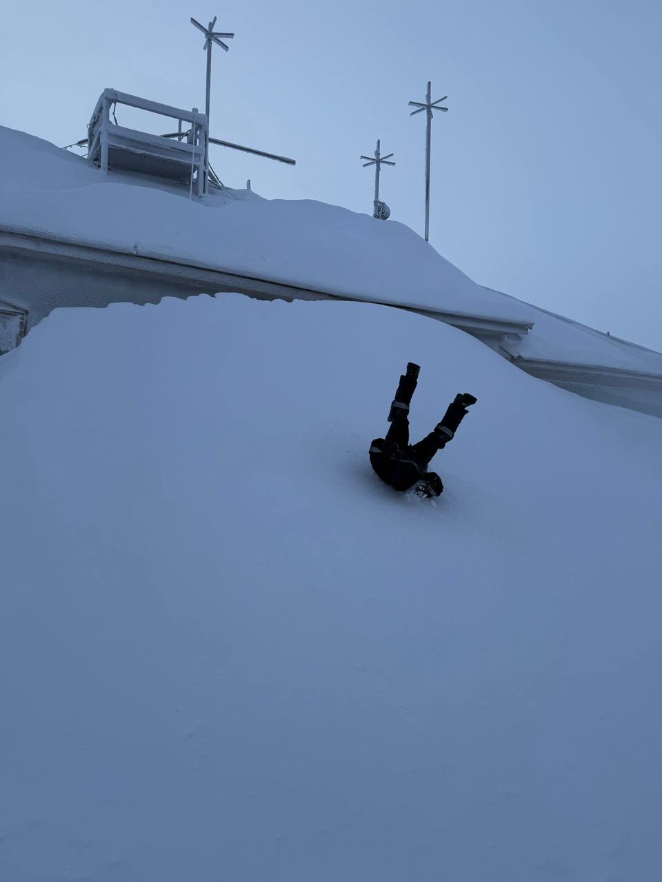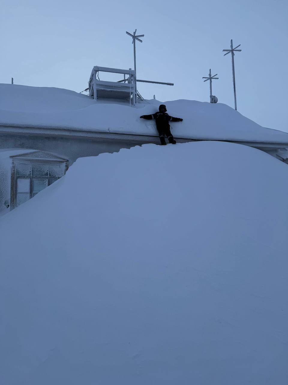 С сугробов выше роста человека возле Объединённой гидрометеорологической станции им. Е.К. Фёдорова можно кататься, как с горок.