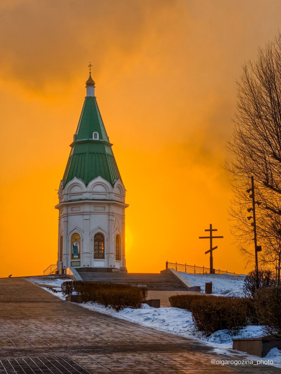 «Солнце садится медленно, будто не торопится прощаться с долгими зимними днями. Оно окутано легким золотистым сиянием, которое мягко ложится на снежные просторы и тихие улицы города. Этот оттенок тепла словно дарит надежду на близкое пробуждение природы от долгого сна», пишет авто снимков Ольга Рогозина.