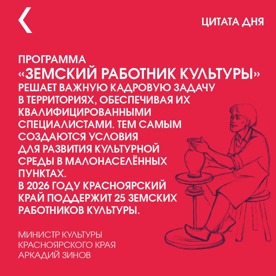 В 2026 году Красноярскому краю предоставлена субсидия на поддержку 25 работников отрасли культуры.