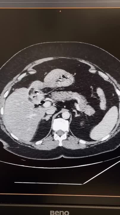 Медики заподозрили острый панкреатит: при этом ферменты поджелудочной железы оказались в норме, а воспалительные показатели крови зашкаливали. УЗИ показало лишь небольшое количество свободной жидкости в брюшной полости.