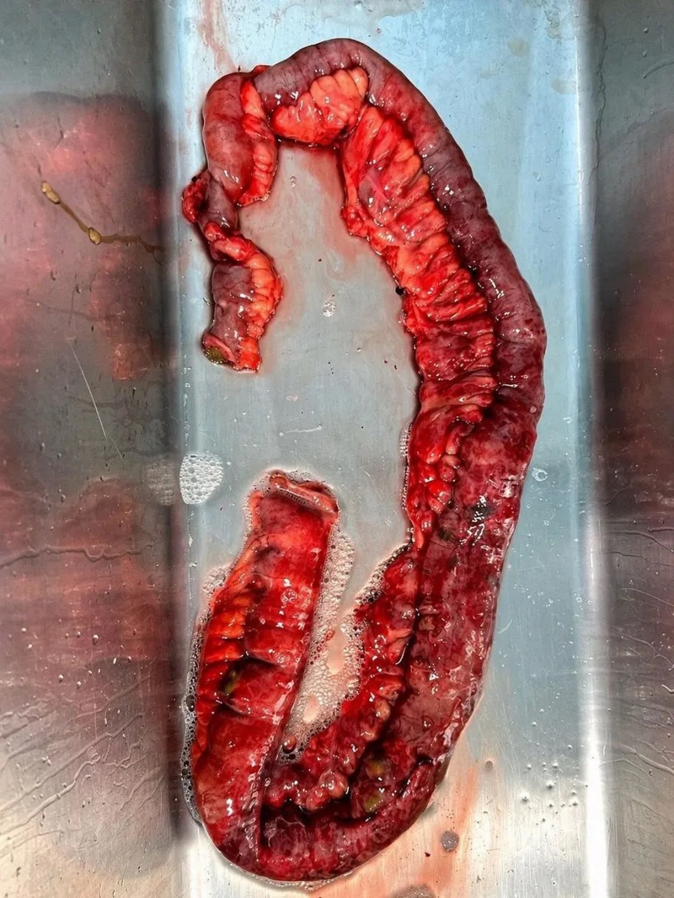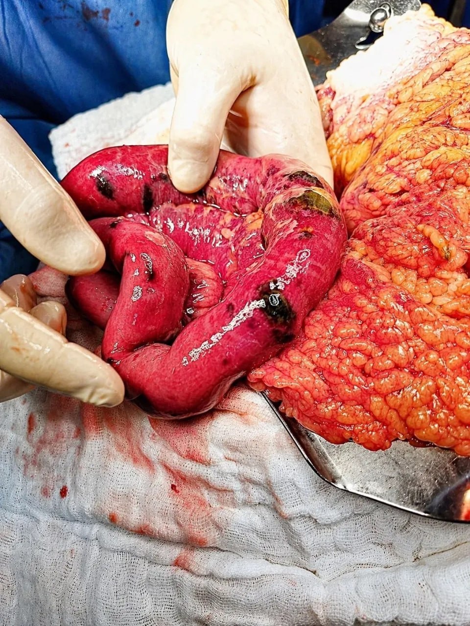 Пациенте планировали удалить камень с помощью лапароскопии, но во время операции хирурги обнаружили перитонит и частичный некроз тонкой кишки. Им пришлось выполнить полостное вмешательство – резекцию участка кишки с удалением камня. Послеоперационный период осложнился гнойным воспалением, потребовалась повторная операция для санации брюшной полости.