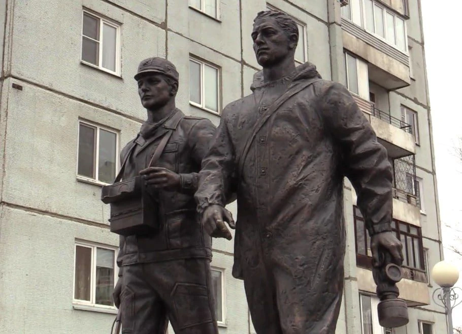 На постаменте – 2 молодых мужчины. В руках они держат дозиметр и противогаз. Высота фигур – более 2 метров. Прототипами скульптурных образов стали собирательные портреты красноярских ликвидаторов.