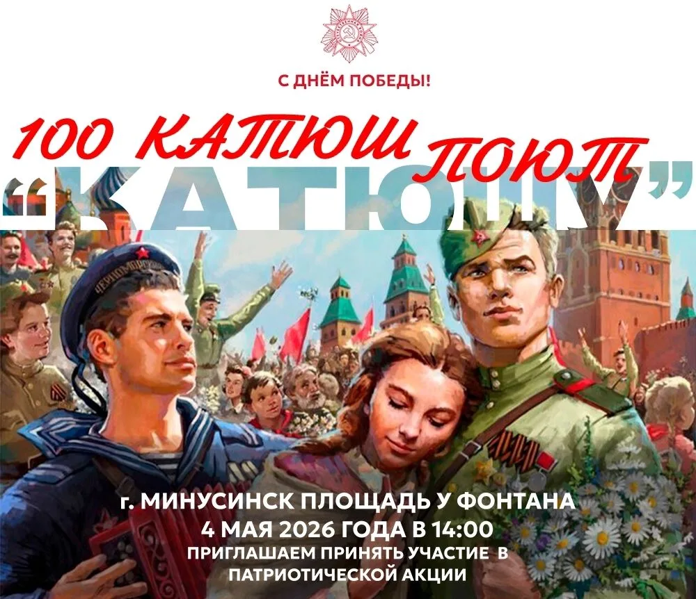 В понедельник, 4 мая, в 14:00 на площади «У фонтана» сто Екатерин из Минусинского округа исполнят легендарную песню «Катюша», отдав дань памяти событиям Великой Отечественной войны.