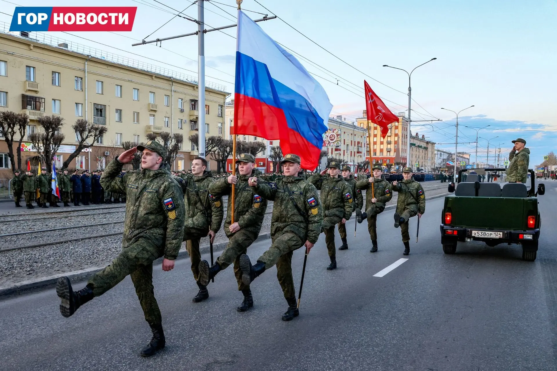 Проход парадных подразделений состоялся на проспекте имени газеты «Красноярский рабочий». На месте побывал наш фотограф Дмитрий Шабалин.