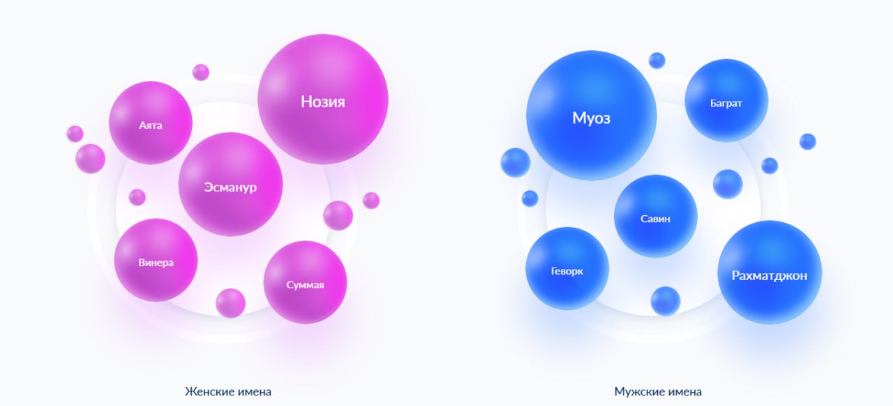 Самыми редкими мужскими именами оказались Муоз, Баграт, Савин, Геворк и Рахматджон. Среди девочек - Винера, Нозия, Эсманур, Суммая и Аята.