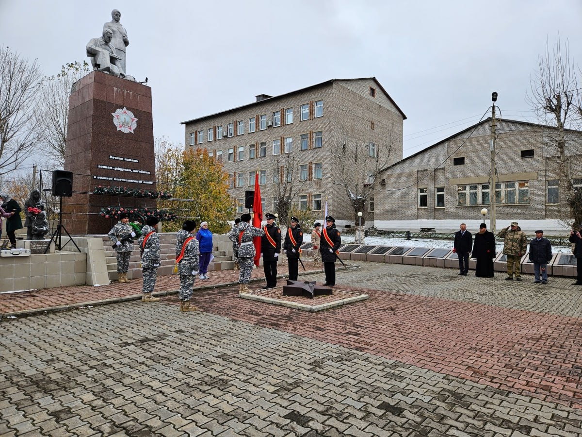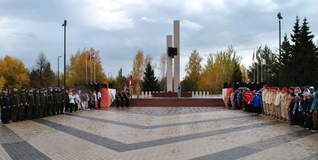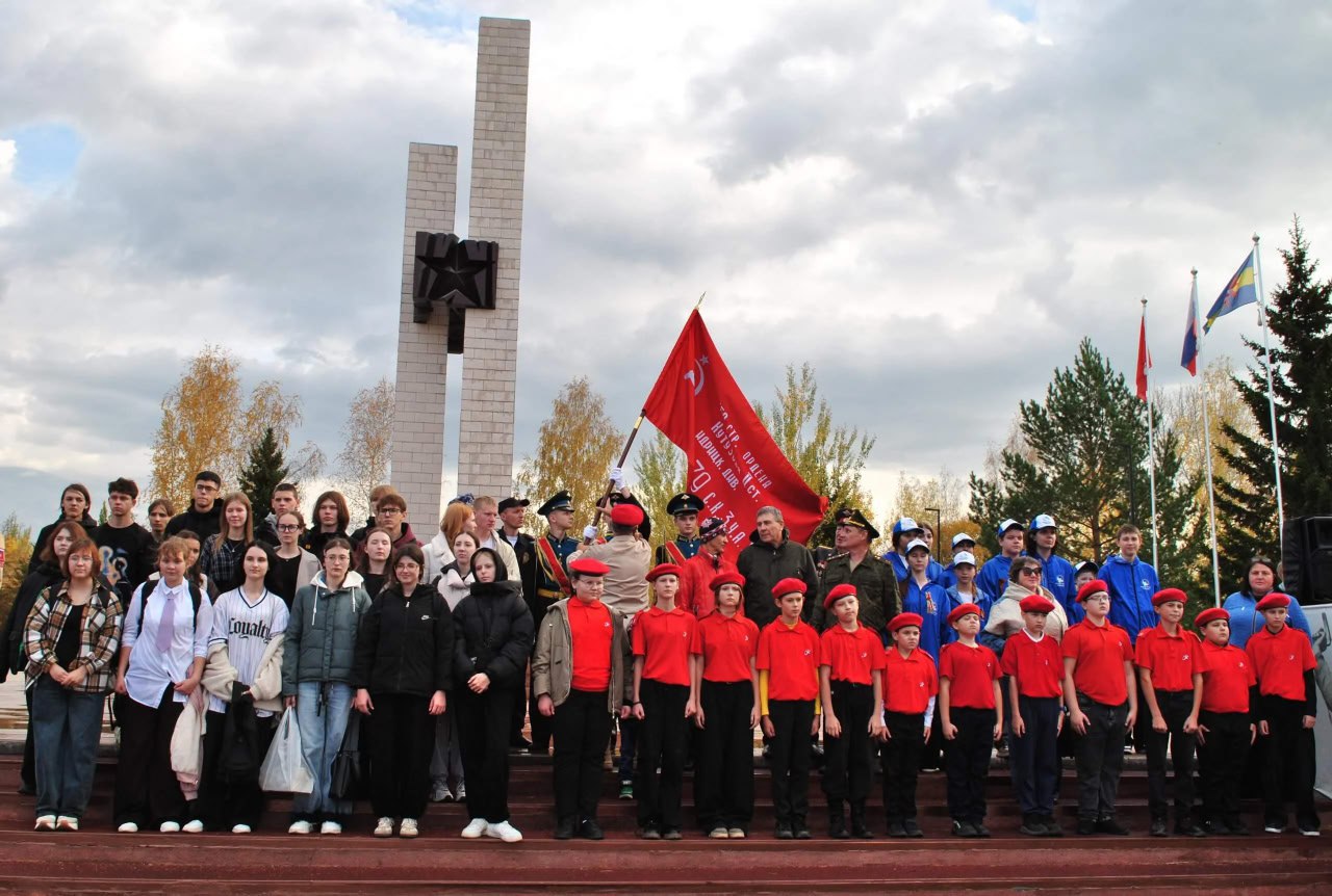 29 сентября у мемориала «Скорбящая мать» состоялась церемония передачи знамени Ужурскому округу. Кадеты и начальник штаба «Юнармии» в Шарыпово Анатолий Даниленко вручили знамя представителям местного отделения «Юнармии» и воспитанникам военно-патриотического клуба «Стальные журавли». Участники митинга почтили память павших минутой молчания и возложили цветы к мемориалу.
