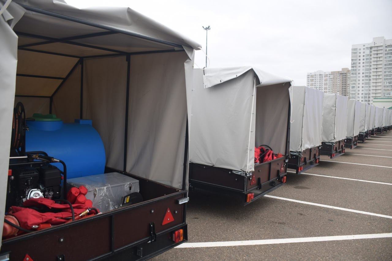 Все машины оборудованы прицепом, средствами связи и специальным инвентарем: пожарными рукавами, емкостями на 500 литров, мотопомпами, ранцевыми огнетушителями и ручным инструментом.