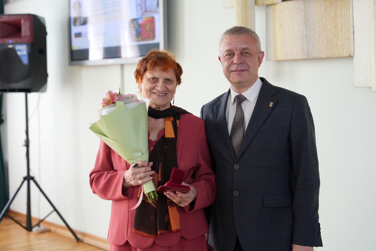 Нагрудные знаки и удостоверения вручили временно исполняющий полномочия главы города Роман Одинцов и председатель городского Совета депутатов Наталия Фирюлина. Перед началом церемонии особой наградой - «Герб города Красноярска» - отметили Лобынцеву Надежду Германовну, члена президиума и председателя культурно-массовой комиссии Совета Ветеранов Центрального района. В сентябре ей исполнилось 90 лет.