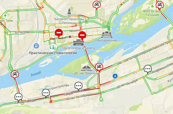 Cамый большой затор сейчас на Николаевском мосту: красным на картах горит вся улица Свердловская, начиная от Матросова. В комментариях водители предполагают, что дело в гололеде на мосту. «ЧП Красноярск» публикует кадры аварии, из-за которой перекрыта целая полоса.