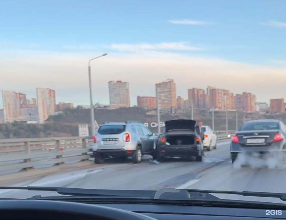 Всему виной, считают водители, авария на мосту, которая перекрыла сразу 2 полосы движения.