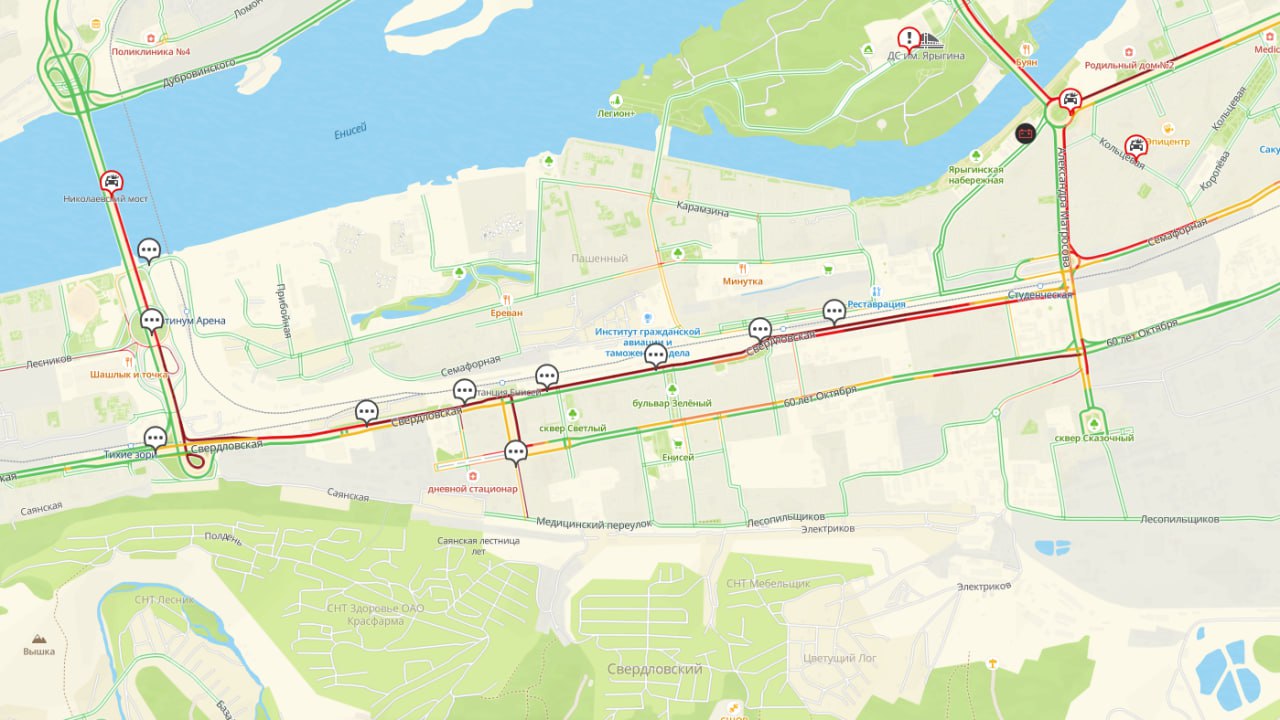 Пробка на Свердловской в сторону Николаевского моста тянется уже от Матросова