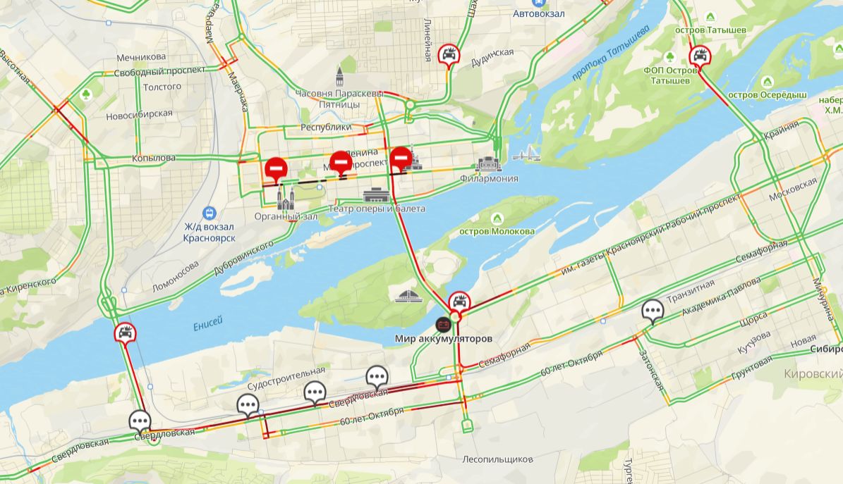 На мостах Красноярска сегодня утром движение оказалось затруднено из-за аварий