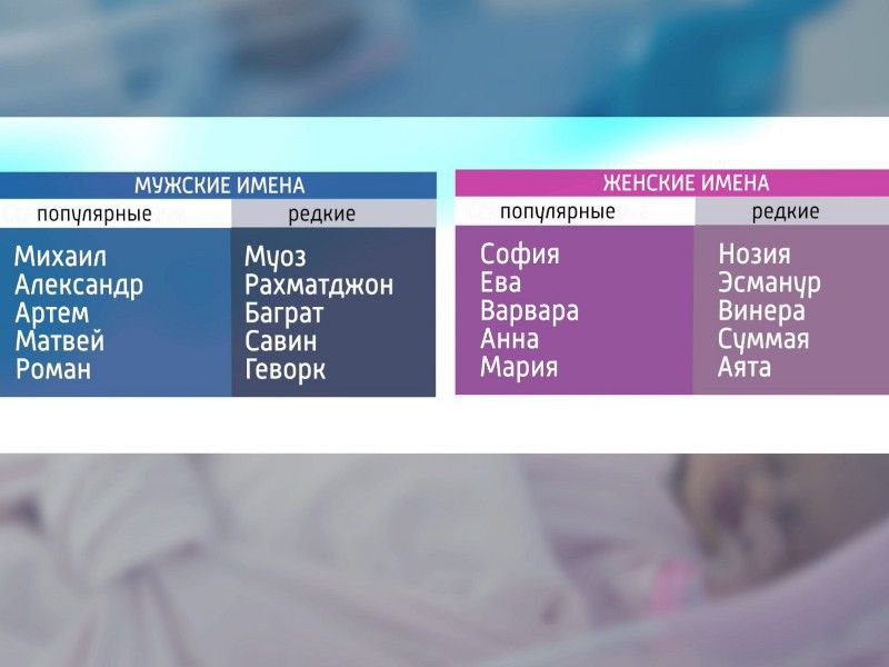Также второй месяц подряд в топе следующие имена для девочек: София, Ева, Варвара, Анна и Мария. А вот реже всего своих малышей называли Муоз, Рахматджон, Баграт, Савин, Геворк. В списке уникальных и редких имён для новорождённых девочек — Нозия, Эсманур, Винера, Суммая, Аята.