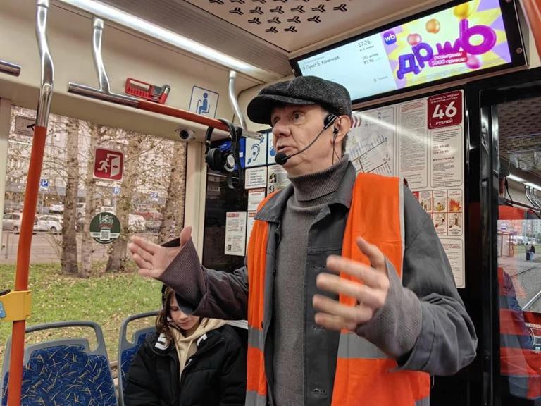 Проект создала команда «Театра на крыше» при поддержке Министерства культуры. За рулём - наш водитель (реальный!) Валентина Гавриленко, которая вместе с актёром делила сцену и маршрут.