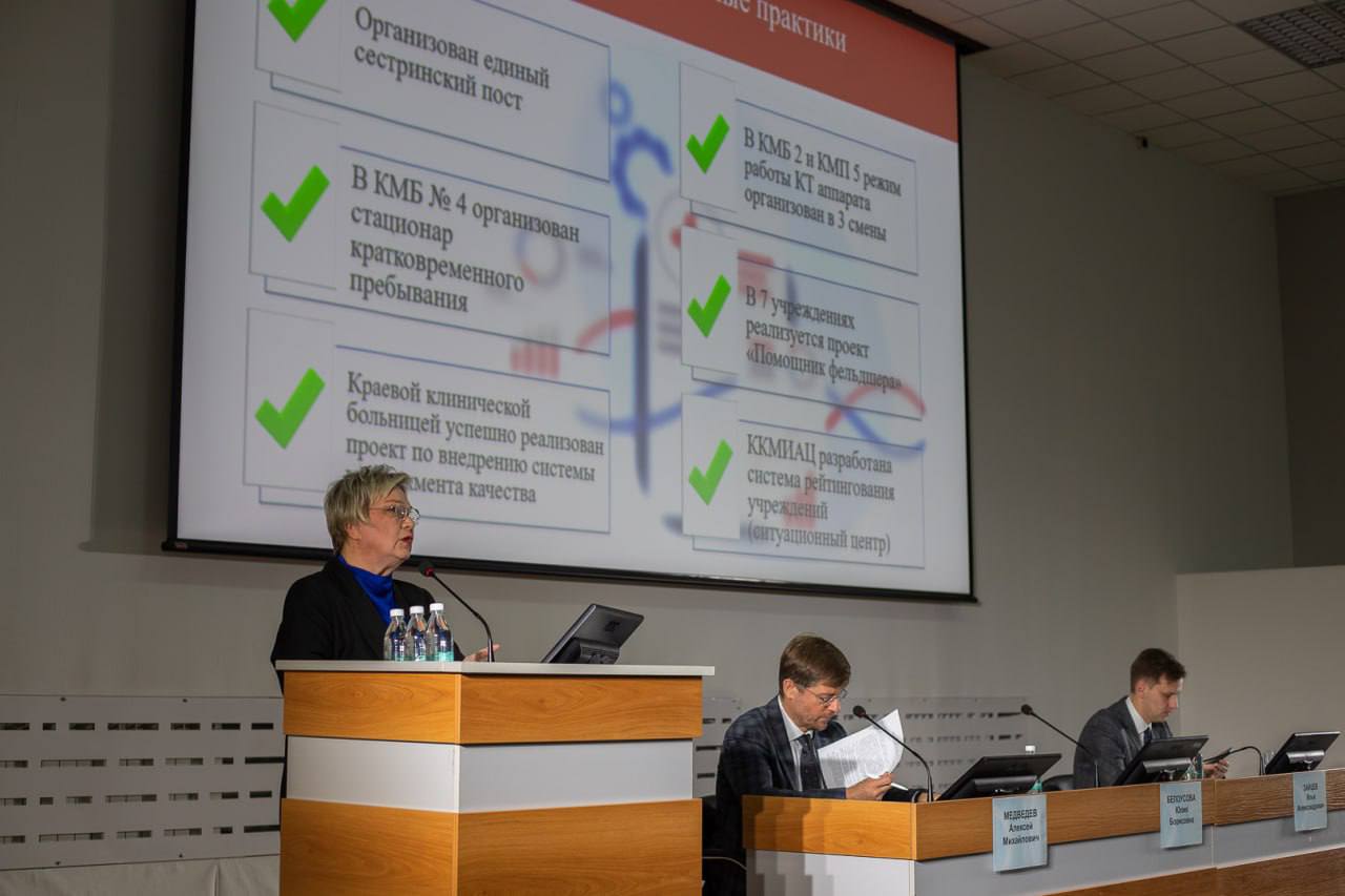 Главные внештатные специалисты обозначили своё видение: увеличить число коек «третьего уровня» (перинатальные центры) в Красноярске, развивать центры подросткового и женского здоровья. Отдельная тема — низкая рождаемость: например, в Красноярске на шесть роддомов — 25 родов в неделю. Говорили про возможность будущего запуска правобережной БСМП, качество обследования онкопациентов до направления в онкоцентр, работу амбулаторных онкоцентров.